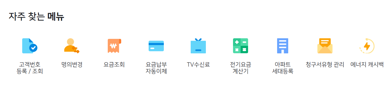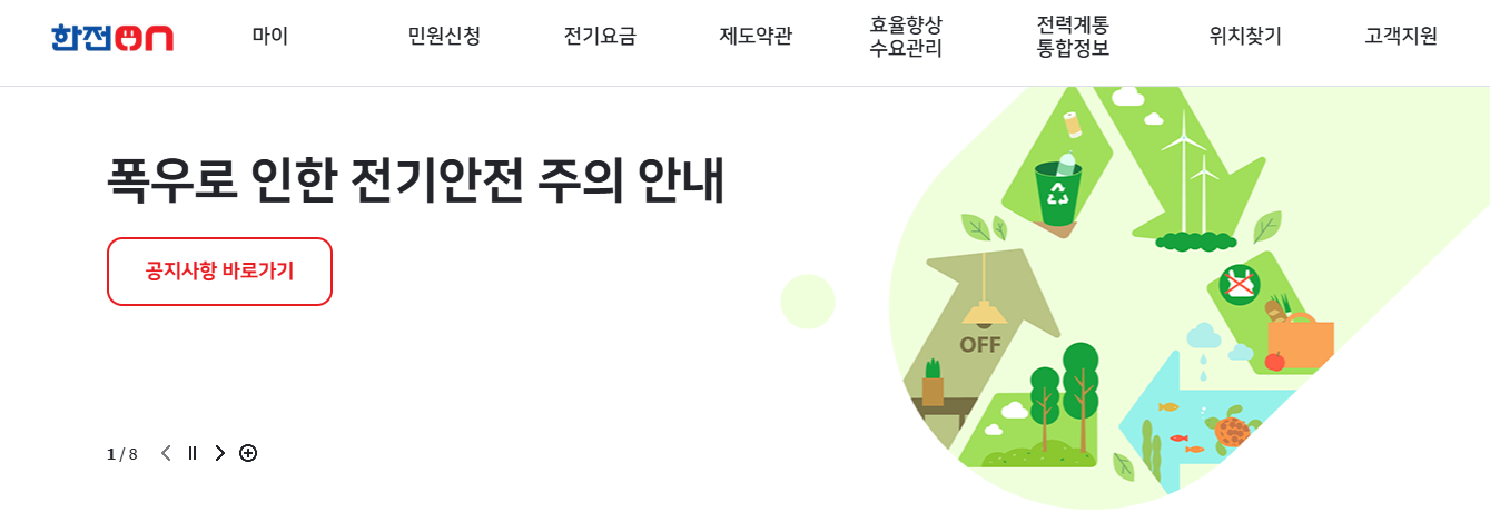 - 전기요금 조회, 납부, 신청 등 대부분의 업무를 온라인으로 처리 가능