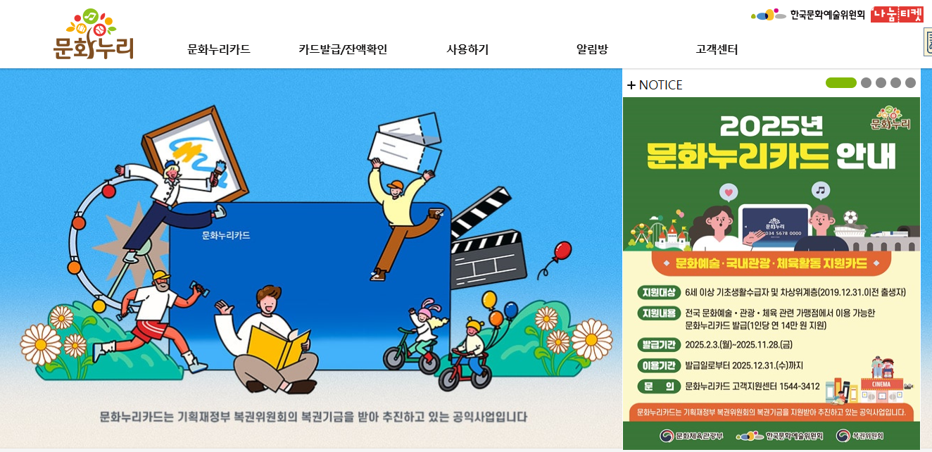 - 사용처는 반드시 문화누리카드 공식 홈페이지에서 확인