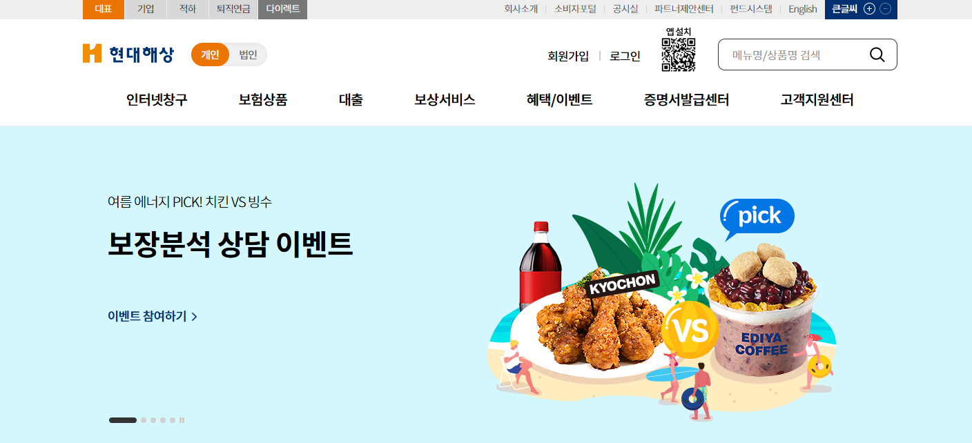 현대해상 다이렉트 홈페이지에서는 실시간 상담원 연결 서비스를 제공합니다: