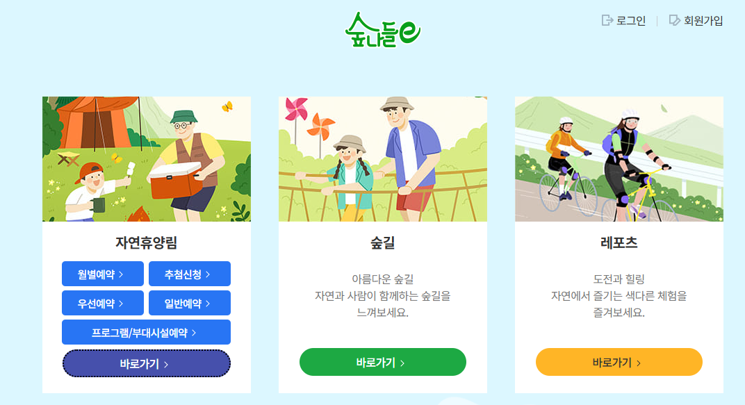 - 회원가입/로그인: 숲나들e 통합회원으로 가입