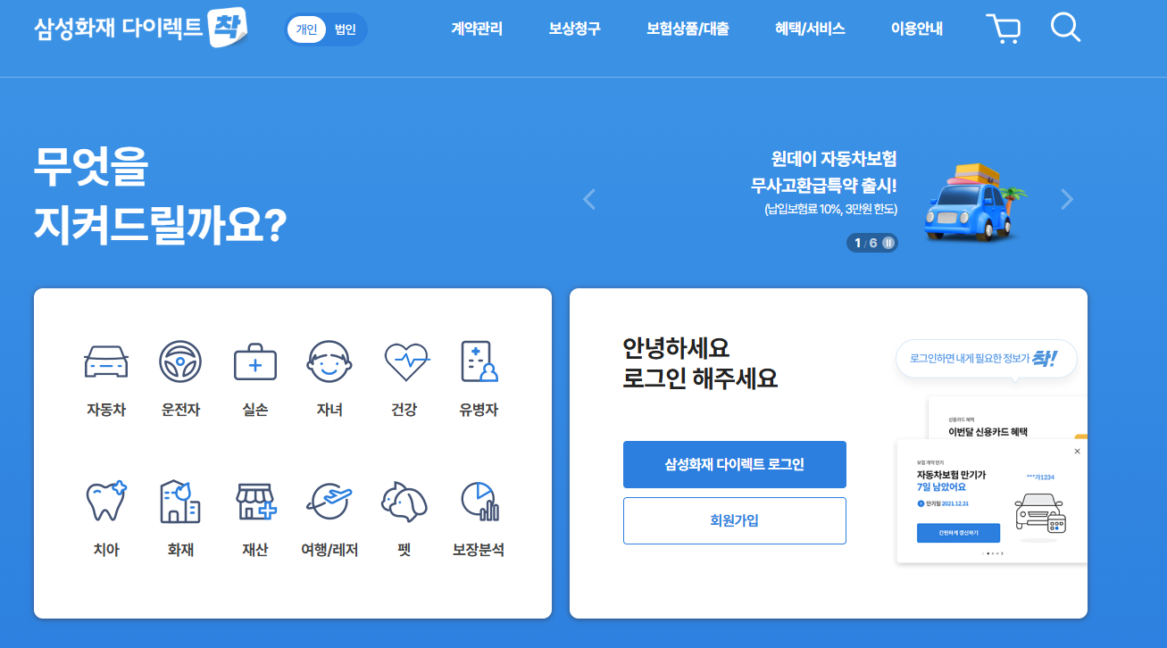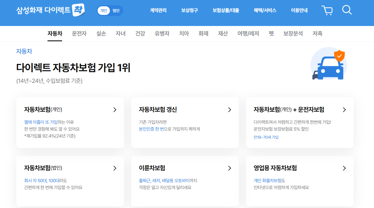 삼성화재 다이렉트 자동차보험 홈페이지